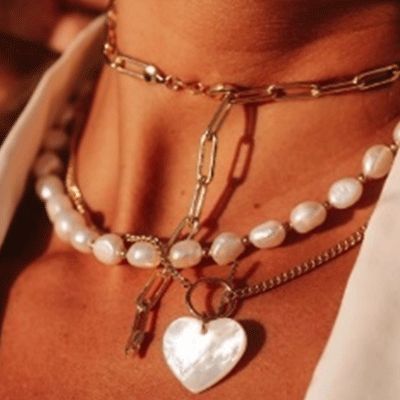 Freshwater pearls, faux pearls and mother-of-pearl shells are paired with stainless steel, stones, crystals and leather to create a contemporary aesthetic. The contrast between the allure of pearls and the industrial edge of metals adds a modern touch.